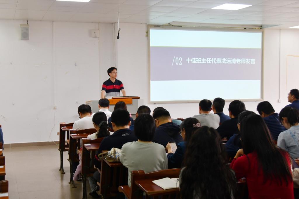 集团“十佳班主任”代表冼远清副教授在会上做班主任工作分享,提出“三坚持”工作法:坚持问题导向,通过课堂考勤、学业预警等制度严抓学风;坚持严管厚爱,建立“一对一”帮扶机制;坚持创新引领,开展个性化指导。他以所带班级为例,展示了严格管理与人文关怀相结合取得的成效。