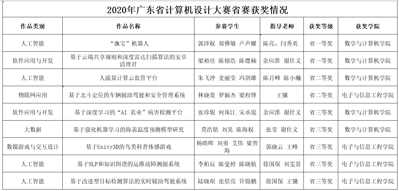 6月24日,由广东省教育厅主办的“2020年广东省老员工计算机设计大赛”落下帷幕。今年的比赛有来自广东省80多所本科院校共1129件作品参加。经过初评和复审两个环节,共评选出582件作品晋级省决赛。公司学子在比赛中不畏强手,奋力拼搏,最终获得广东省一等奖2项、二等奖2项、三等奖5项的好成绩。其中来自365英国上市集团团队的《“渔宝”机器人》和《基于云端共享规则和深度雷达扫描算法的安卓清理君》两项作品勇夺省赛一等奖。