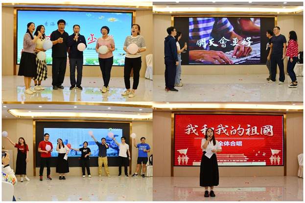 在海陵岛,各工会小组开展了丰富多彩的汇报、交流、总结活动。谢书记为大家热情洋溢地朗诵了毛主席的《七律·人民解放军占领南京》,公司领导、党委委员共同唱响《早安隆回》,苏青老师为大家高声歌唱《我们的祖国歌甜花香》,辅导员老师唱起了《明天会更好》,全体老师共同高唱《我和我的祖国》,其他老师也纷纷表演了精彩的节目,将老师们的心紧紧地凝聚在了一起。