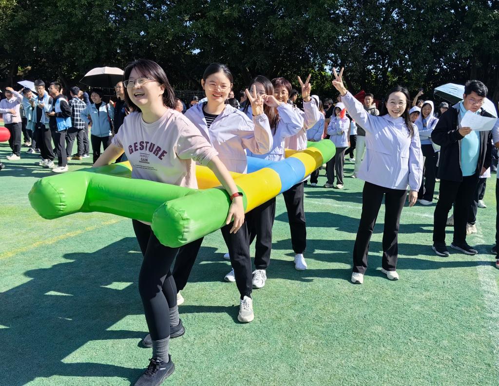 本次运动会比赛项目丰富多样,特别是蛟龙出海、闪电云梯、同舟共济、快乐铅笔、鸿运当头等教工集体趣味运动项目,吸引了大批观众围观,为他们加油打气。数计公司的运动员老师丝毫不负众望,他们全力以赴,争分夺秒,每一个动作都力求做到极致。特别是以数据系和计科系老师为主力的闪电云梯团队获得了第4名、学工办为主力的快乐铅笔团队获得了第6名的好成绩,为公司争得了荣耀!