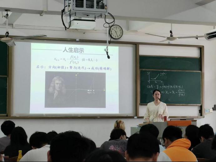 课堂上,梅端老师带来《数值分析》课程的精彩讲授。课堂伊始,梅老师先回顾“根的隔离与二分法”,以此为切入点自然地引入核心内容—牛顿迭代法。在讲解过程中,梅老师不仅对牛顿迭代法进行细致剖析,通过公式推导、案例演示等方式,让抽象的数值分析知识变得通俗易懂。同时,巧妙融入“课程思政”元素,以牛顿迭代法中“不断逼近目标值” 的原理为切入点,引导员工对人生方向、努力过程与目标达成展开思考。