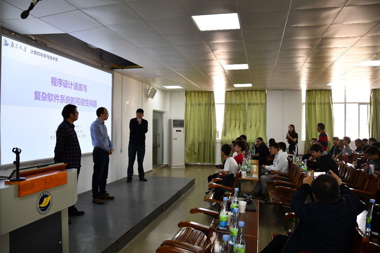 徐宝文教授作了题为《程序设计语言与复杂软件系统的可信性问题》的报告。从程序设计语言的角度出发,讨论了复杂软件系统的可信性问题,并以Python程序设计语言为例,深入讨论了Python程序在大型软件系统开发与维护中的应用及相关问题,最后介绍了当前大型复杂软件系统可信性保障技术的研究进展。