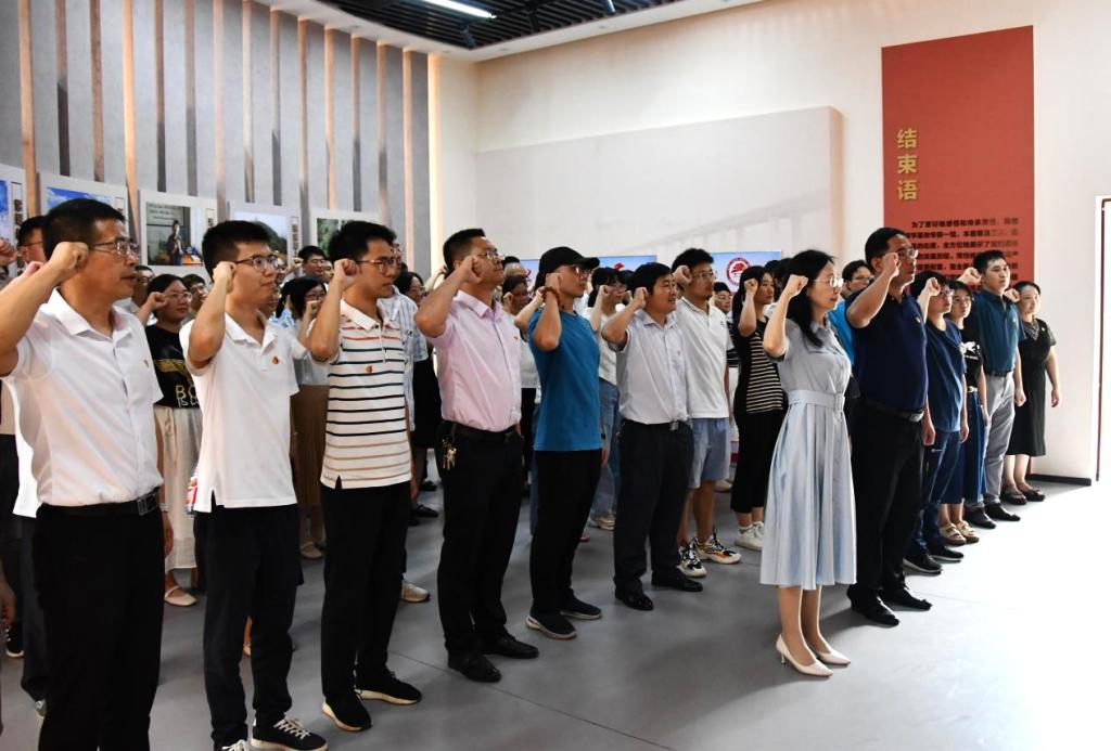 参观完廉政教育基地,公司一行观看了廉政警示教育片《假面》,该片展示了我市个别党员领导干部违纪违法案件,通过当事人现身说法,警醒党员干部要以案为鉴,时刻自警自省,做到警钟长鸣,自觉筑牢拒腐防变思想防线。随后,在龙俊的带领下,全体党员面对党旗重温了入党誓词。