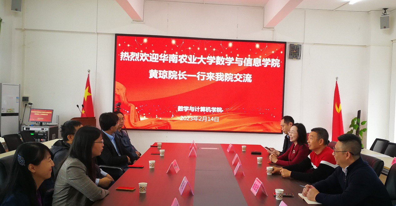 2月14日上午,华南农业大学数学与信息公司经理黄琼教授一行五人到访公司。公司经理彭小红教授、党委书记谢仕义教授、计算机科学与技术系主任余应淮、软件工程系主任陈小瀚等人在第二教学楼A405会议室与来宾进行了座谈交流。会议由彭小红经理主持。