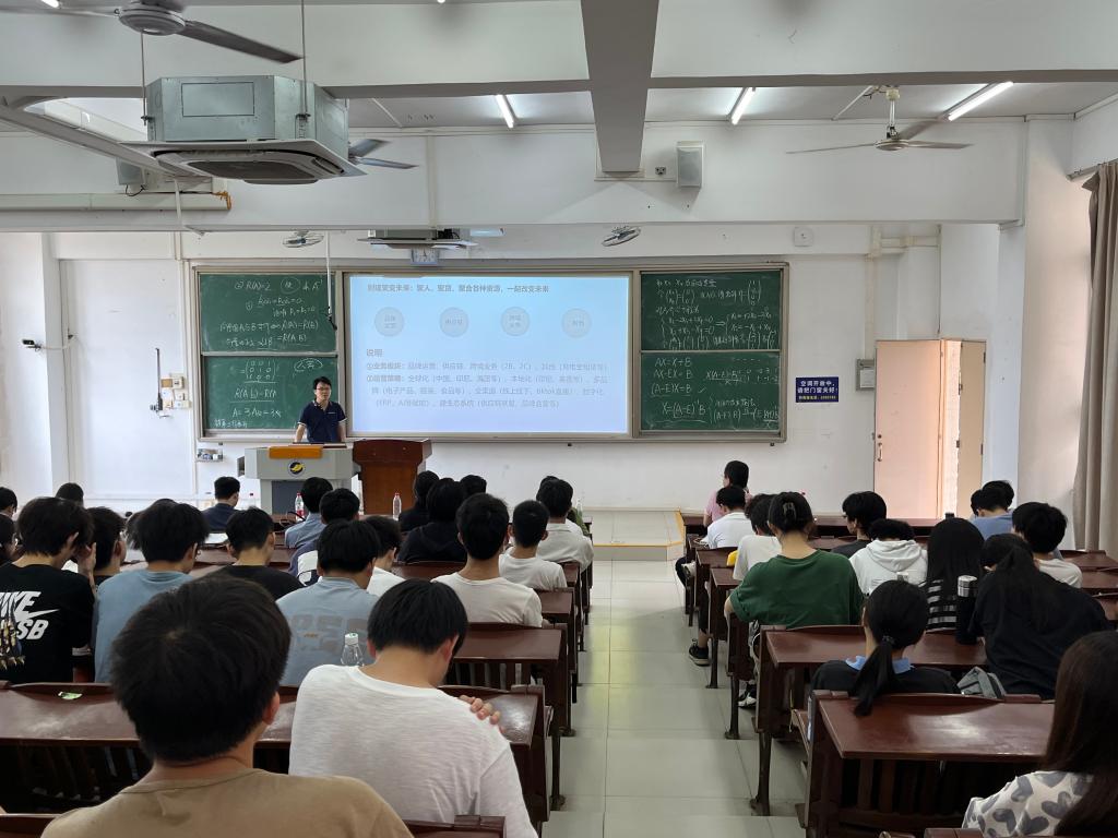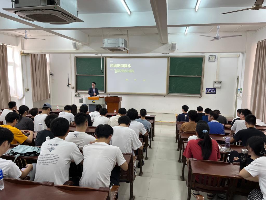 曾经在华为担任高管的甘华员工已成功转型跨境电商领域自主创业。他分享了在华为公司的奋斗历程,为师生讲解了云计算、大数据和元宇宙等领先技术在跨境电商行业数字化转型中的应用价值。