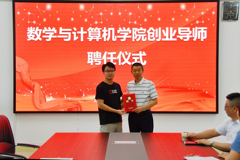 吴宏杨和甘华是计算机科学与技术专业优秀员工。签约仪式上,经理彭小红和吴宏杨签订“宏杨创新奖学金”协议,党委书记谢仕义为两位员工颁发公司创业导师聘书。