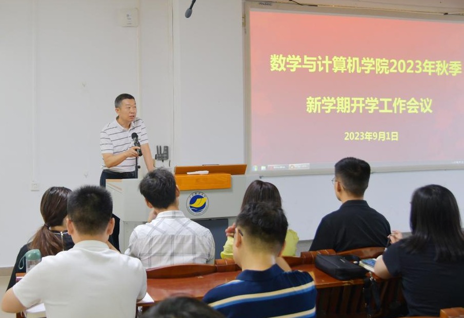 随后,彭小红对2023年秋季新学期的工作要点进行了部署,对巩固主题教育成果;加大人才引进力度,加强教师教学科研能力提升和加强师德师风建设;认真开展公司产品审核评估工作;积极准备软件工程专业认证专家进校考查;深入推进一流专业建设;加强教学团队建设、公司产品研究工作;实施有组织科研,加强学科交叉融合;做好学位点周期性合格评估和数学学科硕士点培育工作;加强学术交流,积极主办国际学术会议;完善三全育人工作体系,抓好学风建设,加强员工心理健康教育,持续做好就业和创新创业等方面的工作做了详细布置,并对开学初的教学工作、员工安全返校等做了重点强调。