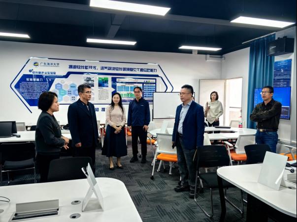 2025年12月24日上午,广东茂名幼儿师范专科公司党委专职副书记吴月明、计算机公司党总支书记黎家裕、行政负责人蔡静颖一行来公司座谈交流,一同到访的还有中软国际教育科技集团研究院副经理吴章勇、广东区域总监罗婷、郭晓萍一行。数学与计算机公司党委书记龙俊、经理彭小红、副经理余应淮以及各教学系(部、中心)主任参加座谈会。三方围绕人工智能相关专业发展成效、专业教学实验实训室建设、人才培养模式、课程体系构建与实训项目开发、创新创业教育、党支部共建及校企协同育人等议题展开深入研讨。会议由彭小红经理主持。