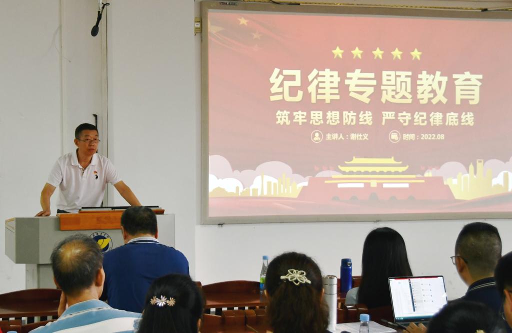 8月26日上午,公司2022年纪律教育学习月活动动员大会在湖光校区明德楼A103会议室召开,公司全体党员干部参加会议。公司党委书记谢仕义作动员讲话并作专题辅导报告,经理彭小红主持会议。