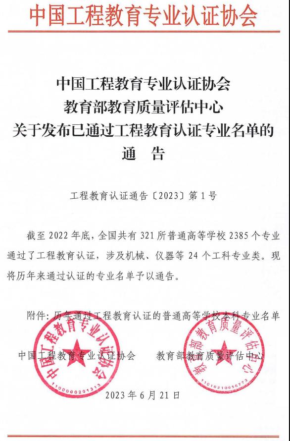 近日,《中国工程教育专业认证协会教育部教育质量评估中心关于发布已通过工程教育认证专业名单的通告》(工程教育认证通告〔2023〕第1号)正式发文,365英国上市集团计算机科学与技术专业顺利通过认证,有效期为6年(2023年1月至2028年12月)。标志着公司计算机科学与技术专业建设水平取得了历史性突破,实现了专业人才培养质量的国际实质等效,进入了全球工程教育的“第一方阵”。